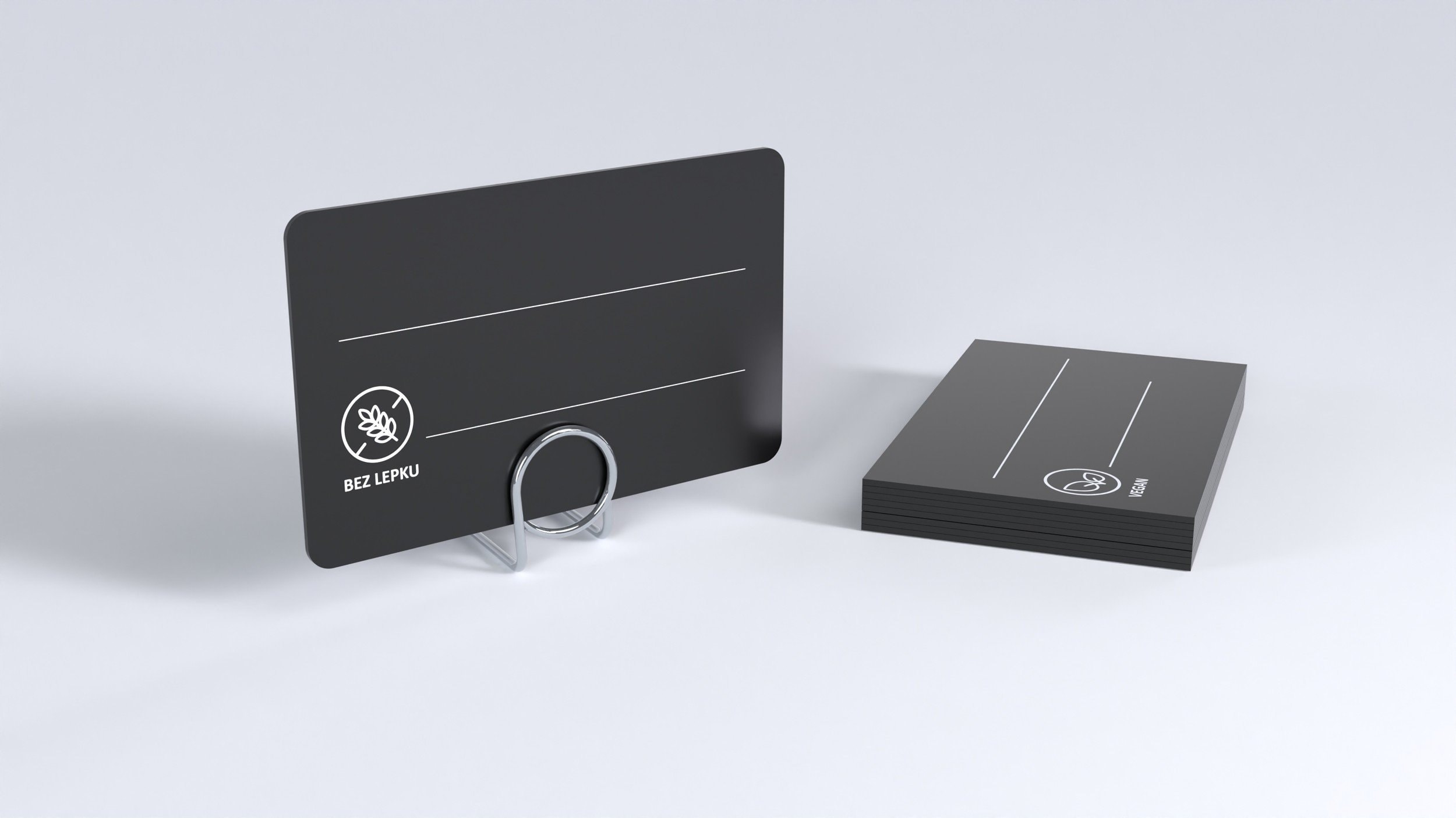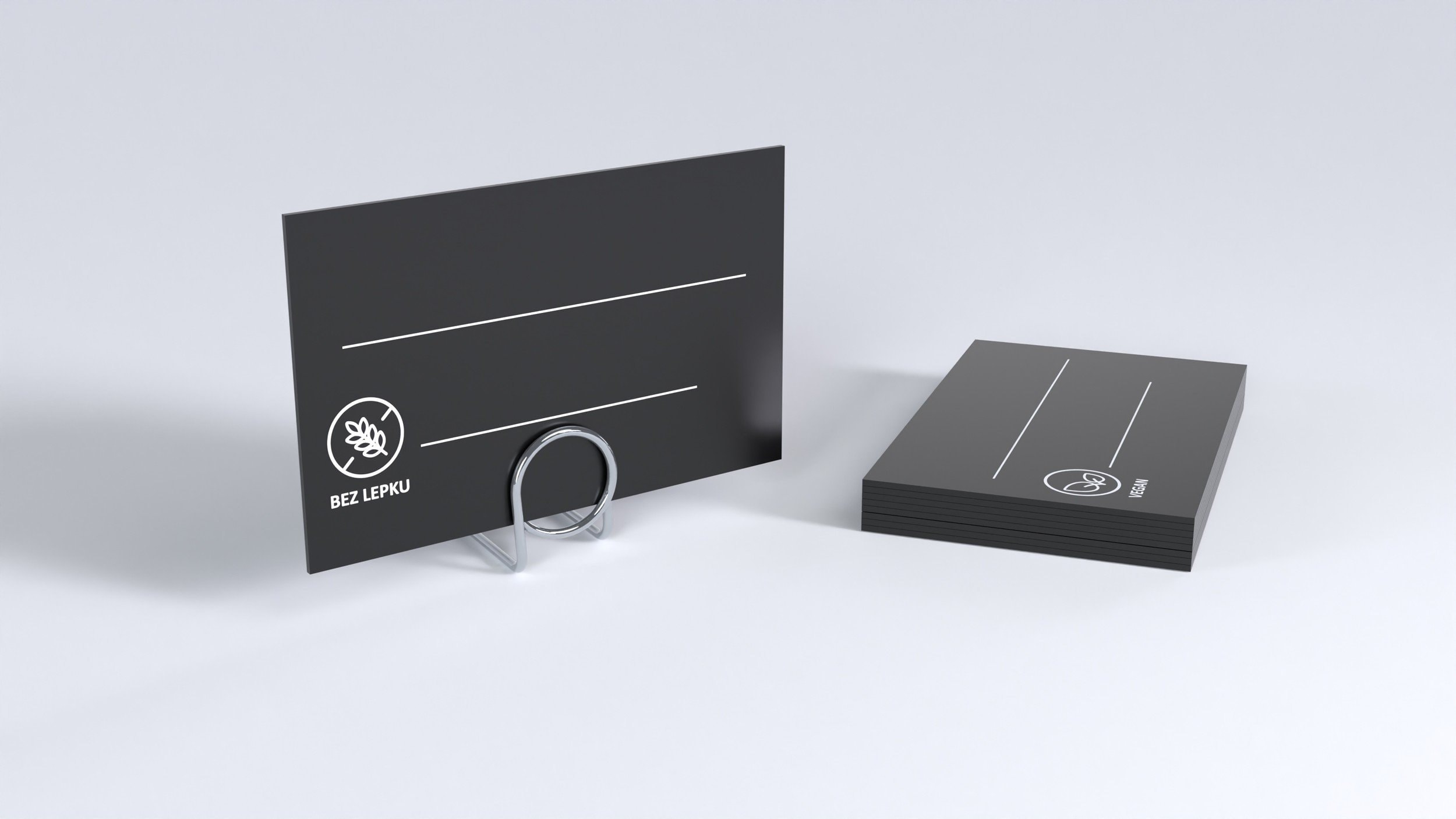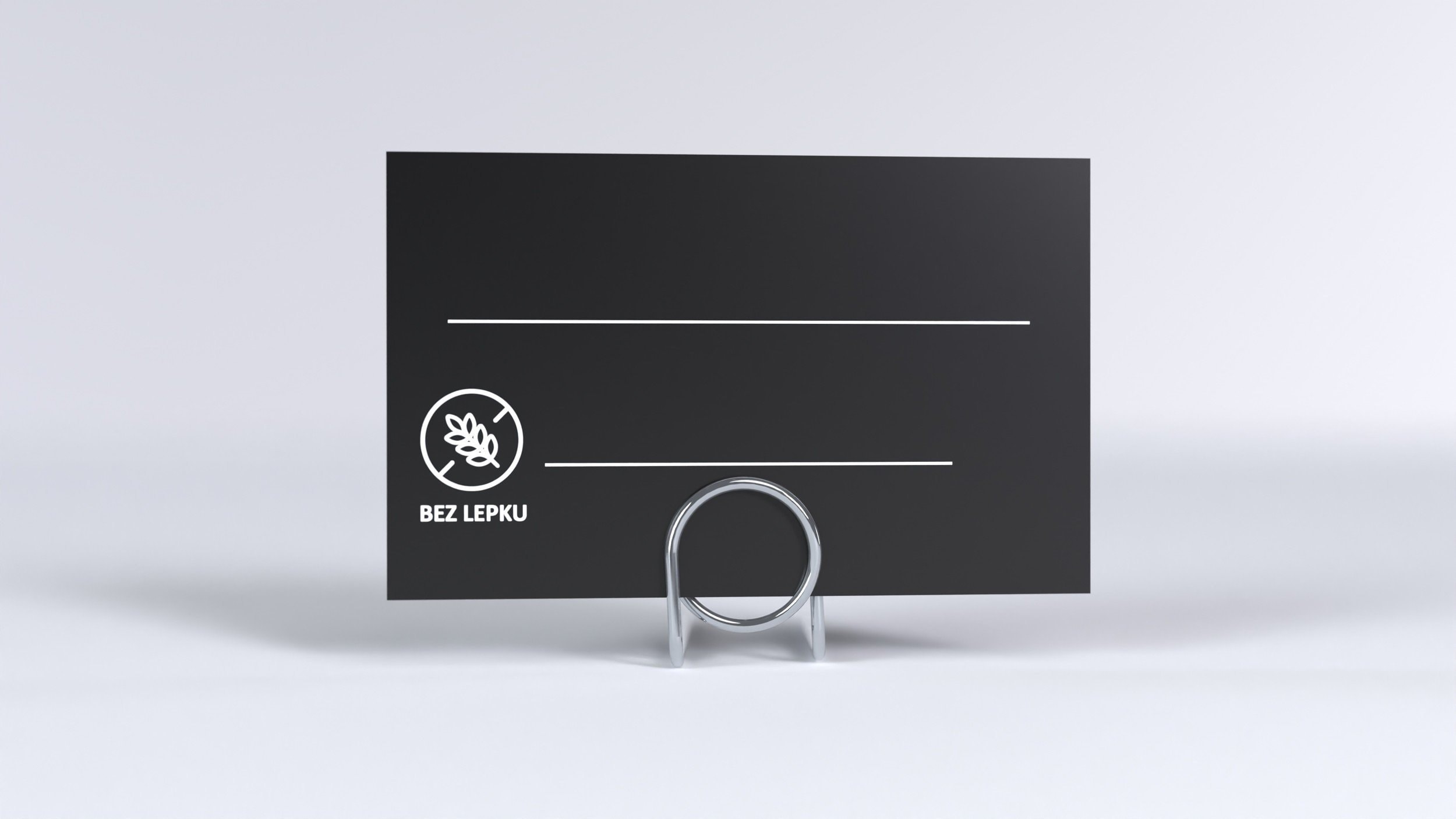 Tags made of black matte plastic for labeling with chalk markers. Our price tags can be used in frames, price tags, stainless steel stands, etc. For labeling in displays, to customers and service, in cafes and wine shops. On request, we can produce price tags in different dimensions, from stronger material or with printing. Standard material thickness is 1.0 mm. The material is suitable for contact with food. Stainless steel stand is not included and can be ordered separately here You are buying directly from the manufacturer.