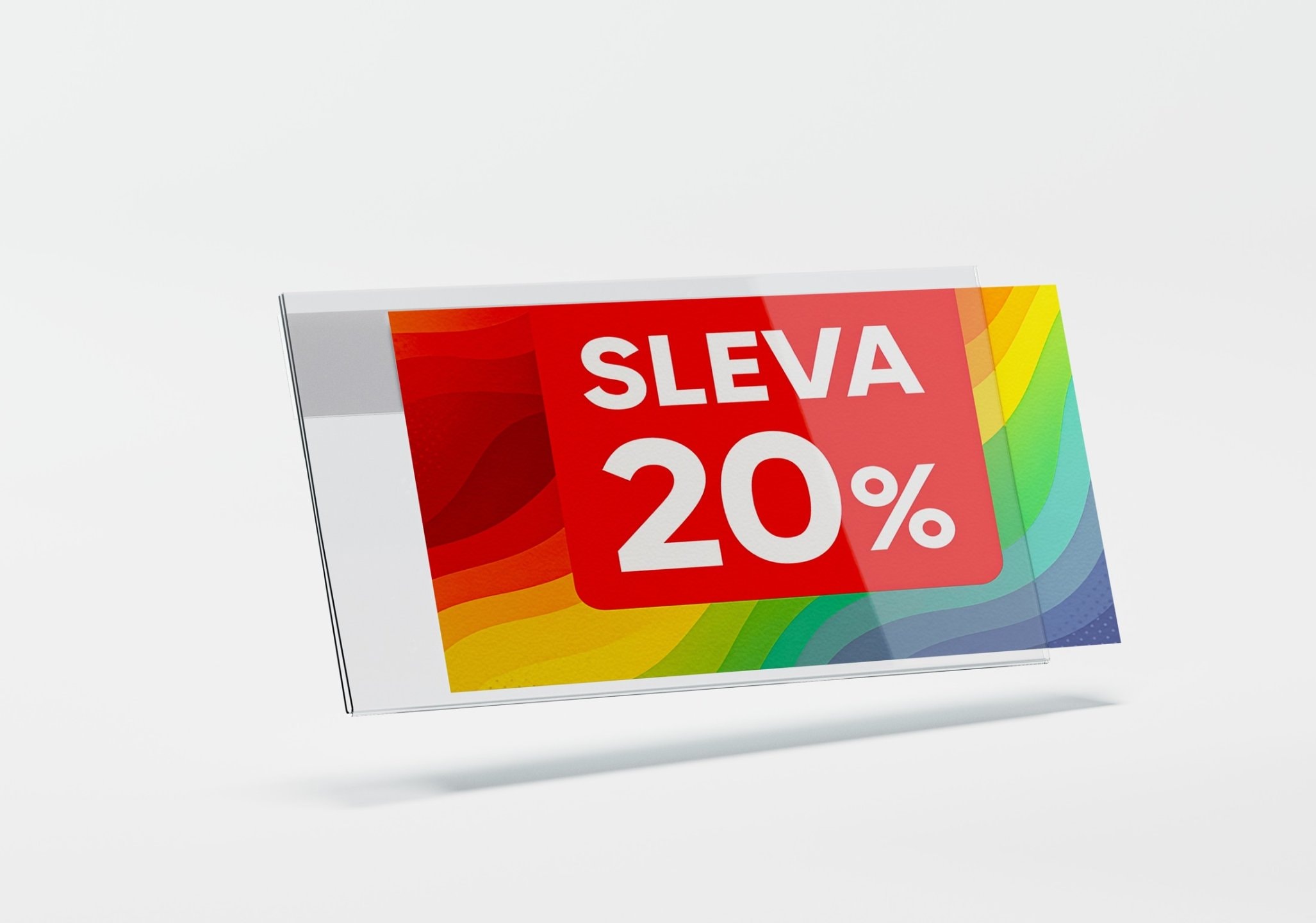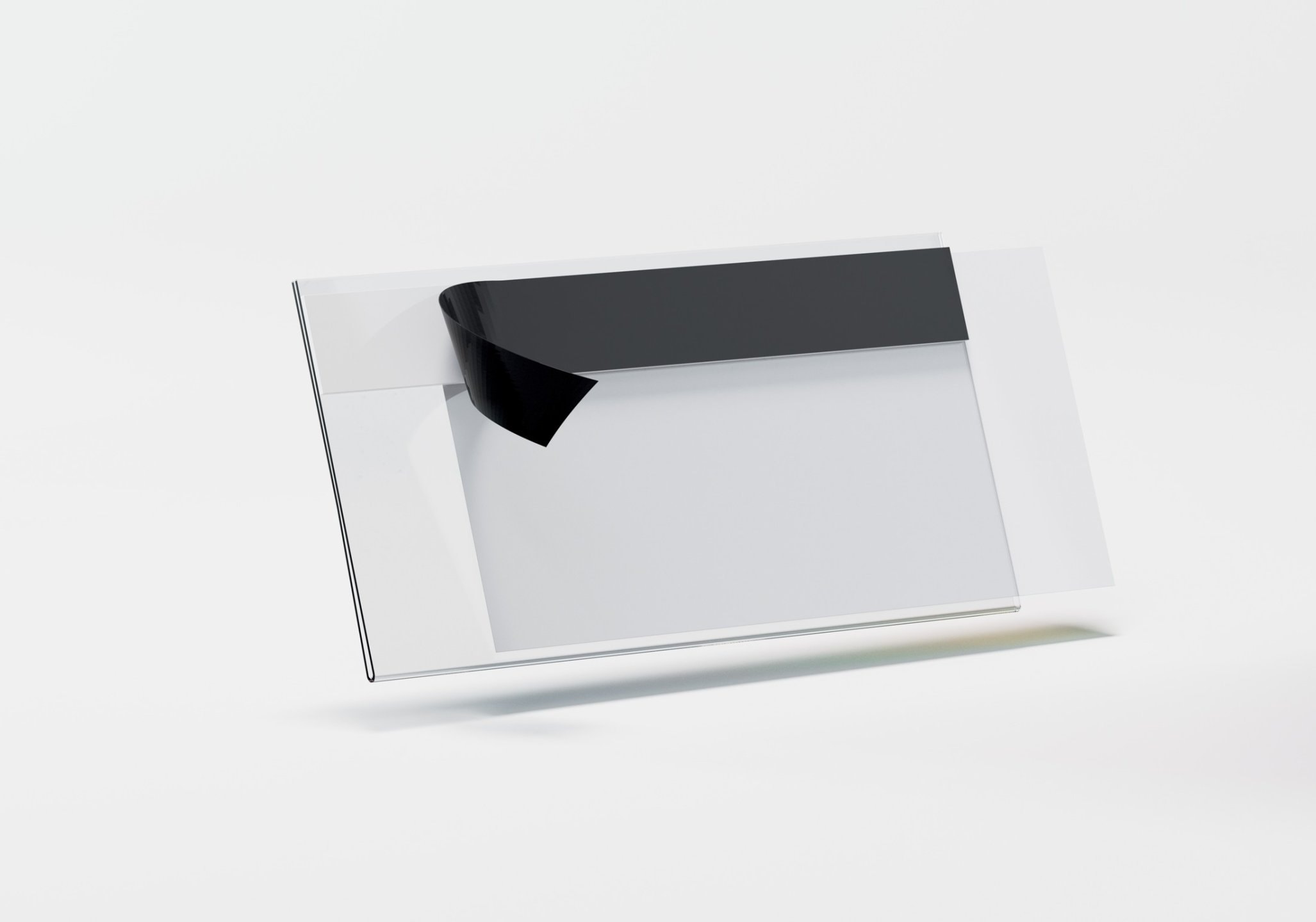 Self-adhesive plastic pocket with one fold made of thin hard plastic. The pocket is designed for inserting a label, leaflet, price tag or label. The pockets are made of hard PVC or PET film from the German manufacturer Klöckner Pentaplast with a glossy or matt (anti-reflective) surface. The thickness of the material used is 0.4 - 0.7 mm, depending on the size. The matt surface is more scratch resistant. The pockets are covered with white double-sided adhesive foam tape IFG2900. IFG2900 tape can withstand higher stresses and is suitable for durable applications on most surfaces. The tape follows the surface well and is also suitable for textured, non-smooth surfaces. On request, we can produce the pockets in an individual design, in a different material or with any type of adhesive tape. The pocket has one self-adhesive tape as standard, if you require two self-adhesive tapes, please write your request in the notes in the order or in the e-mail. You are buying from the manufacturer